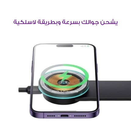 - يشحن جوالك بسرعة وبطريقة لاسلكية.ما يحتاج توصيل كيبل أو أسلاك متشابكة.