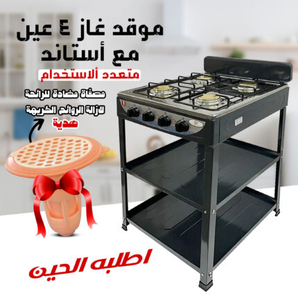 عرض موقد غاز 4 عين مع أستاند الموقد متعدد ألاستخدام بضمان عامين مع مصفاة مضادة للرائحة لازالة الروائح الكريهة هدية