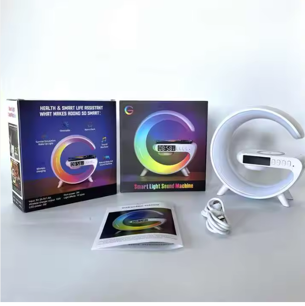 “تجربة شحن لاسلكي مميزة مع شاحن لاسلكي بمكبر صوت ومصباح ليد بتصميم أنيق”