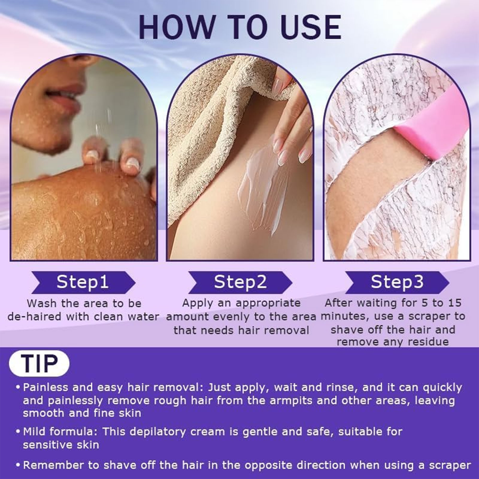 كريم إزالة الشعر والعناية بالبشرة فعّال وبدون ألم (نساء ورجال)