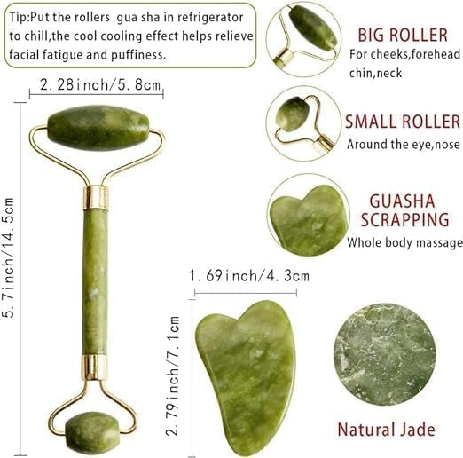 الأبعاد: بكرة التدليك (مقاس قياسي)، جوا شا (تصميم مناسب للوجه والرقبة)
