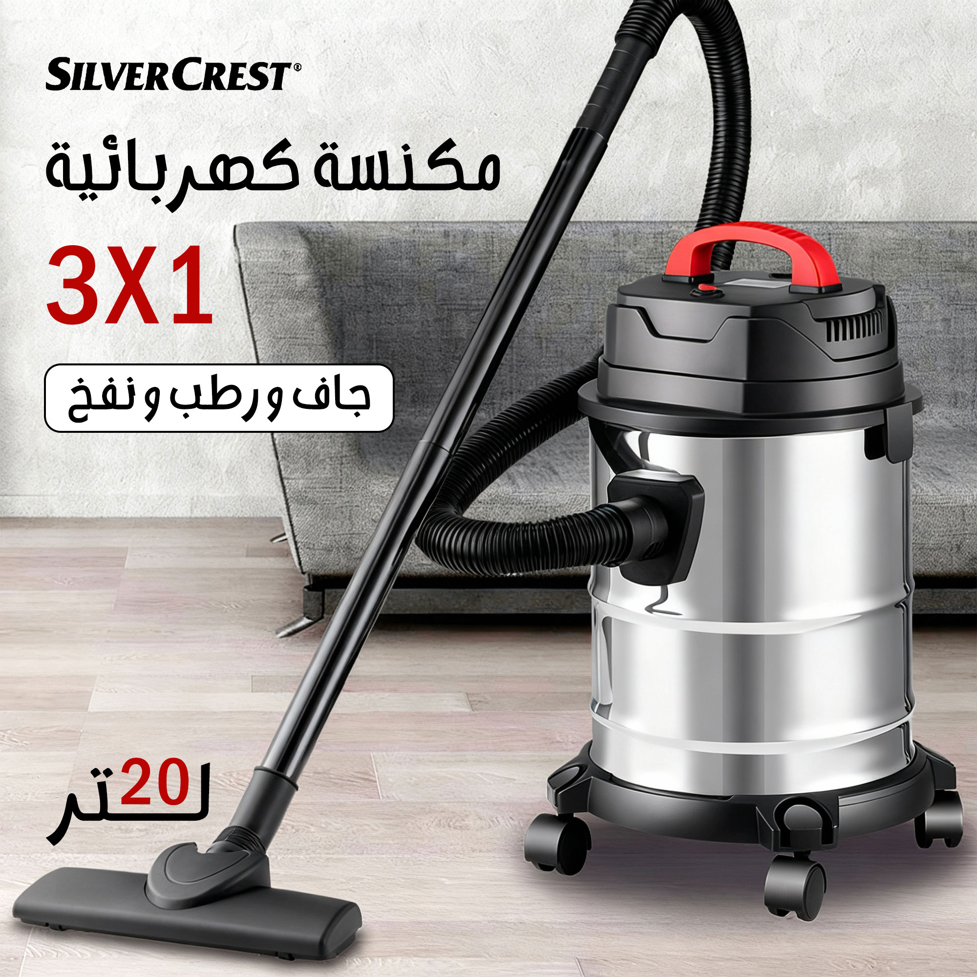 مكنسة كهربائية 3 في 1 جاف ورطب ونفخ سيلفر كريست 20 لتر