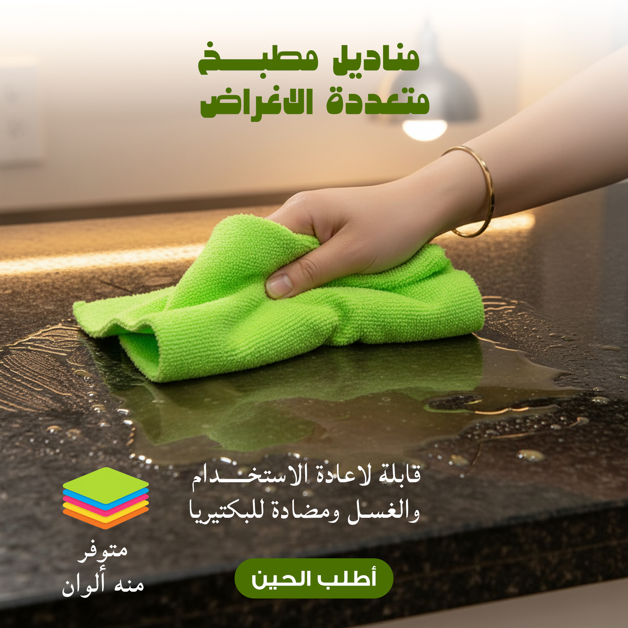 مناديل مطبخ متعددة الاغراض قابلة لاعادة الاستخدام والغسل ومضادة للبكتيريا