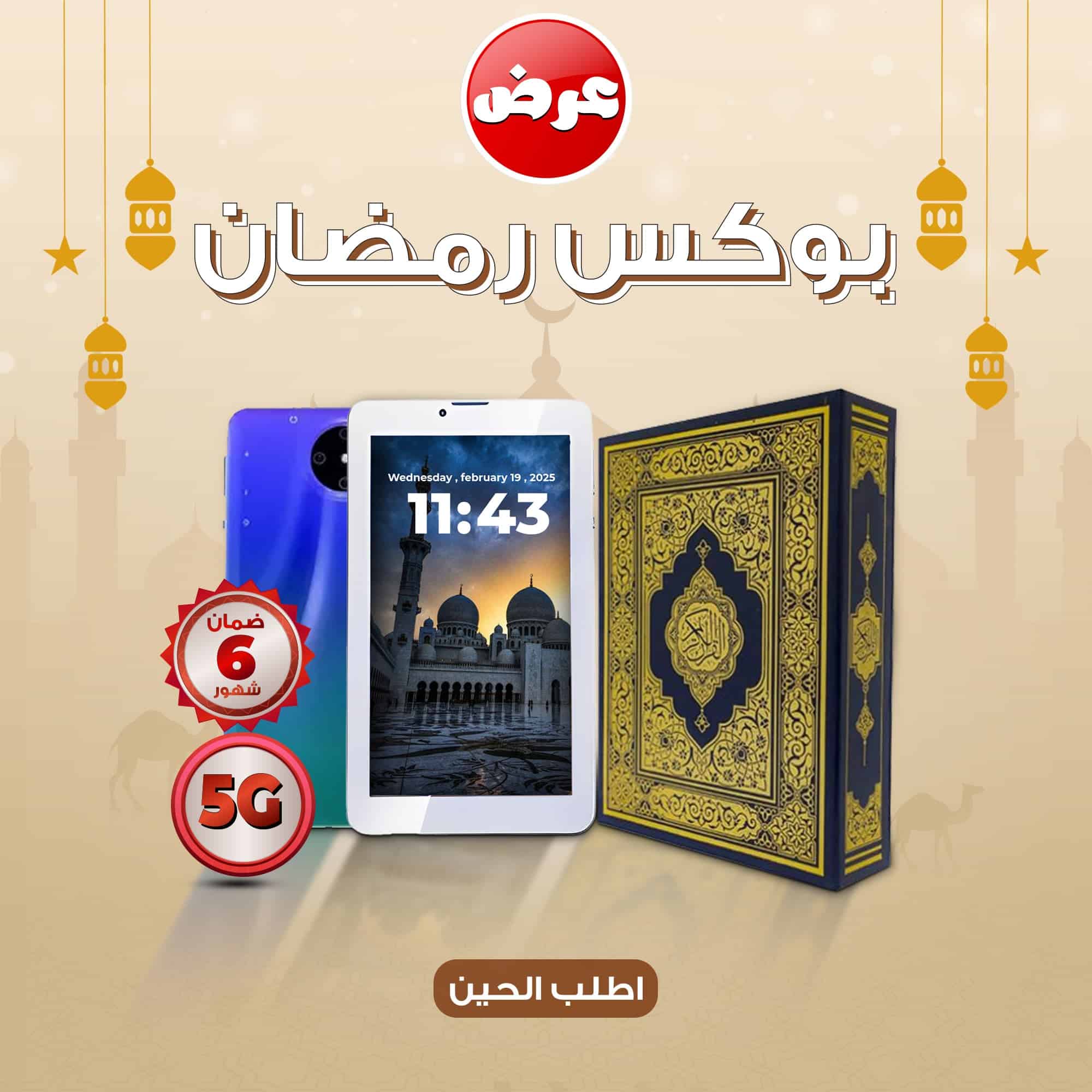 – اسم المنتج: بوكس رمضان ( مصحف تهادوا تحابوا وتابلت ضمان 6 شهور)