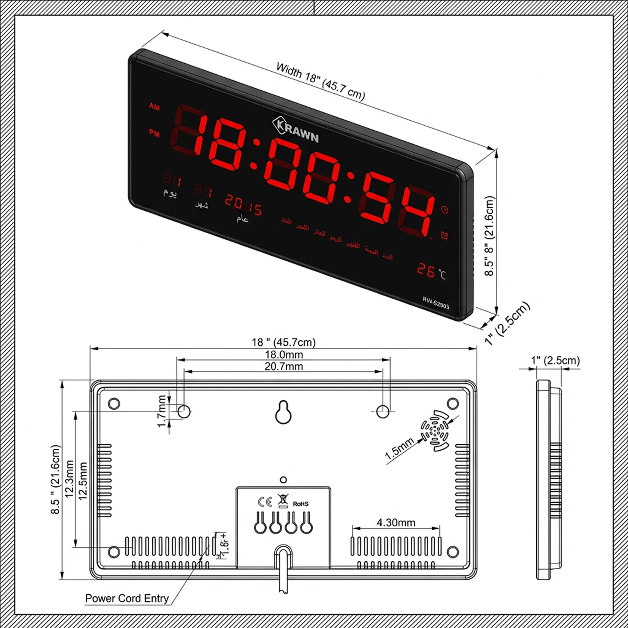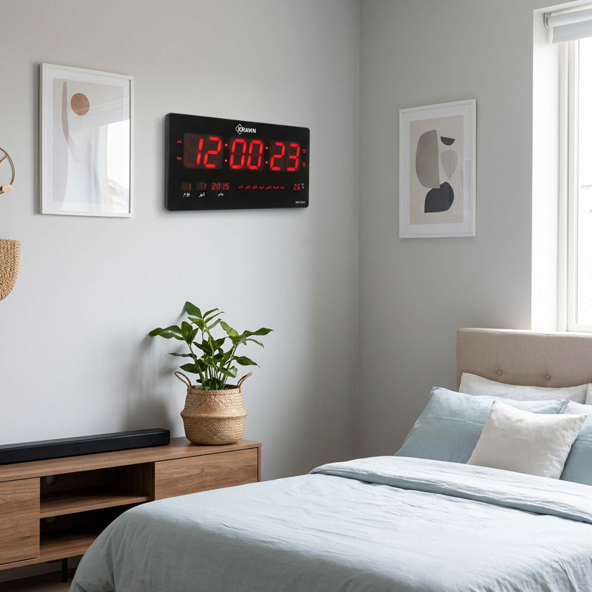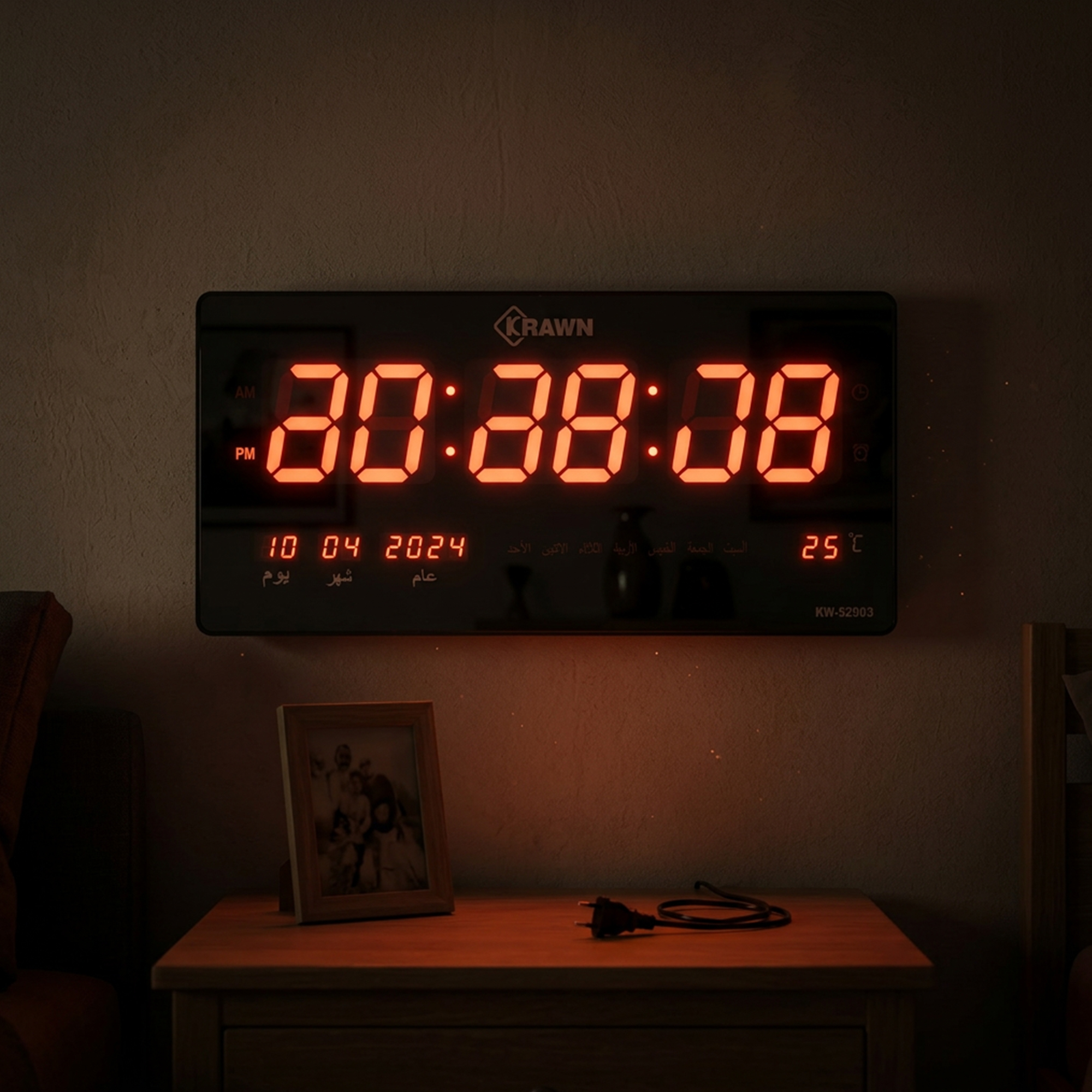الإضاءة الواضحة: أرقام LED حمراء كبيرة تنور الغرفة وتُقرأ من بعيد جداً.