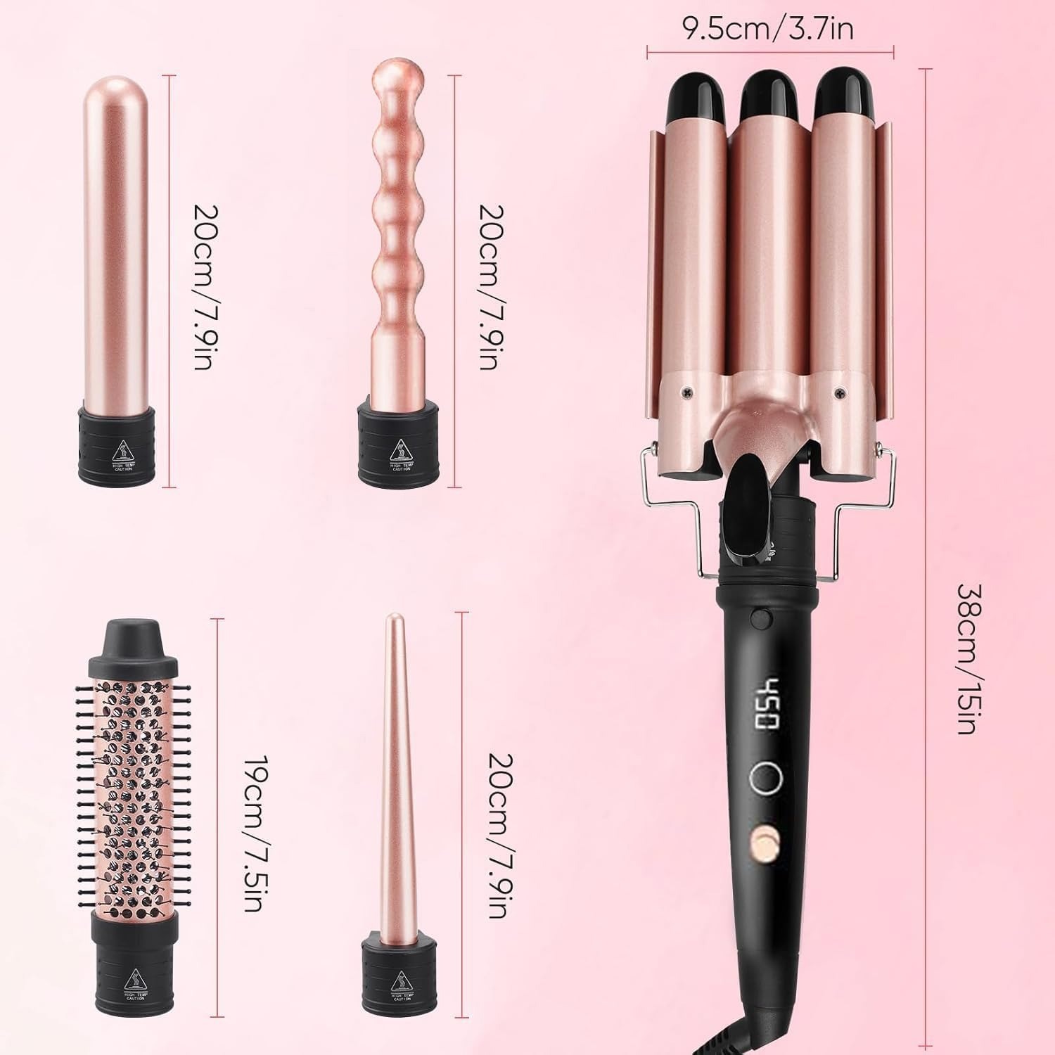 تحتوي على 5 رؤوس مختلفة من السيراميك لتعطيكي تمويجات متنوعة (من 9 ملم إلى 32 ملم)