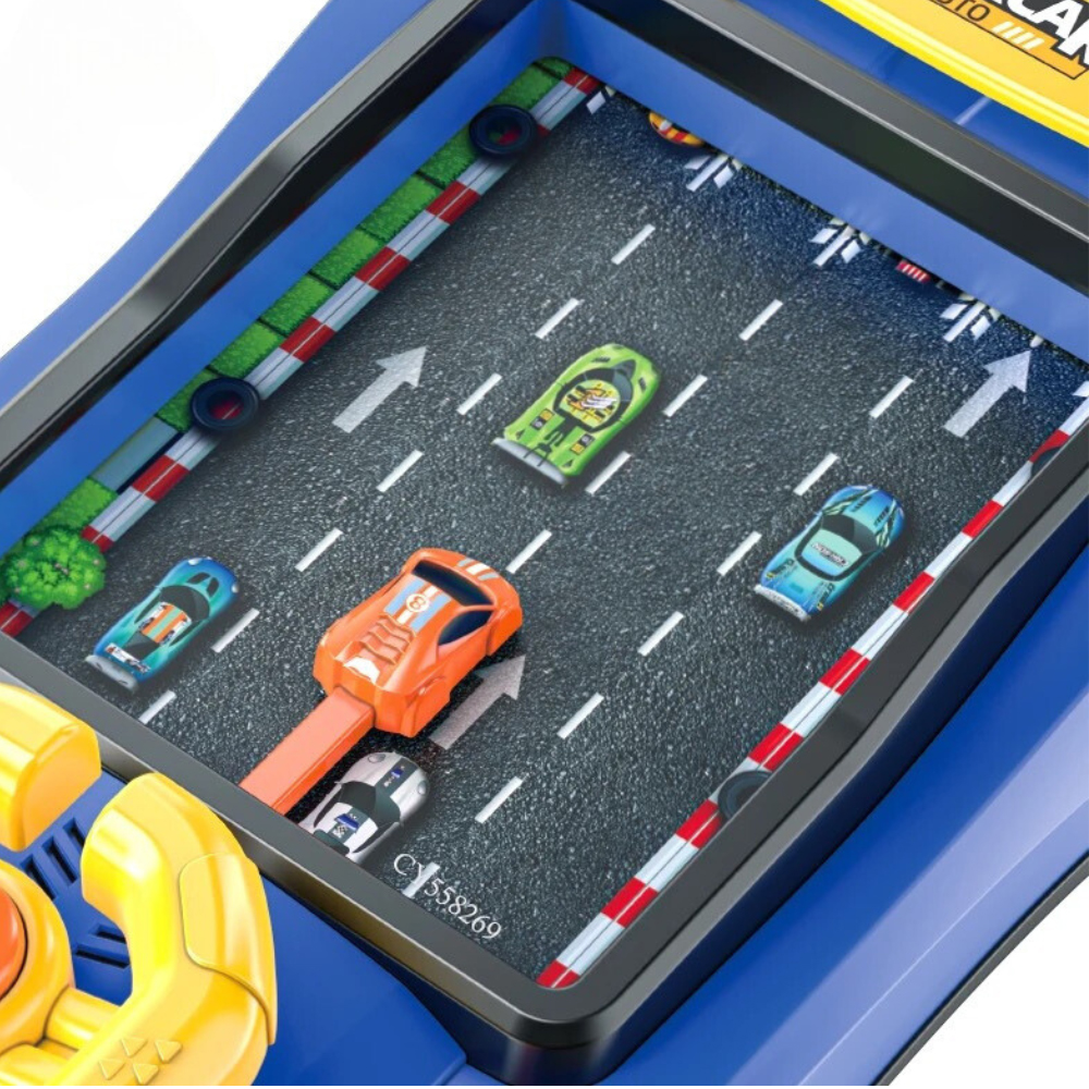 تصميم سيارة سباق أزرق جذاب يخلي اللعب ممتع.