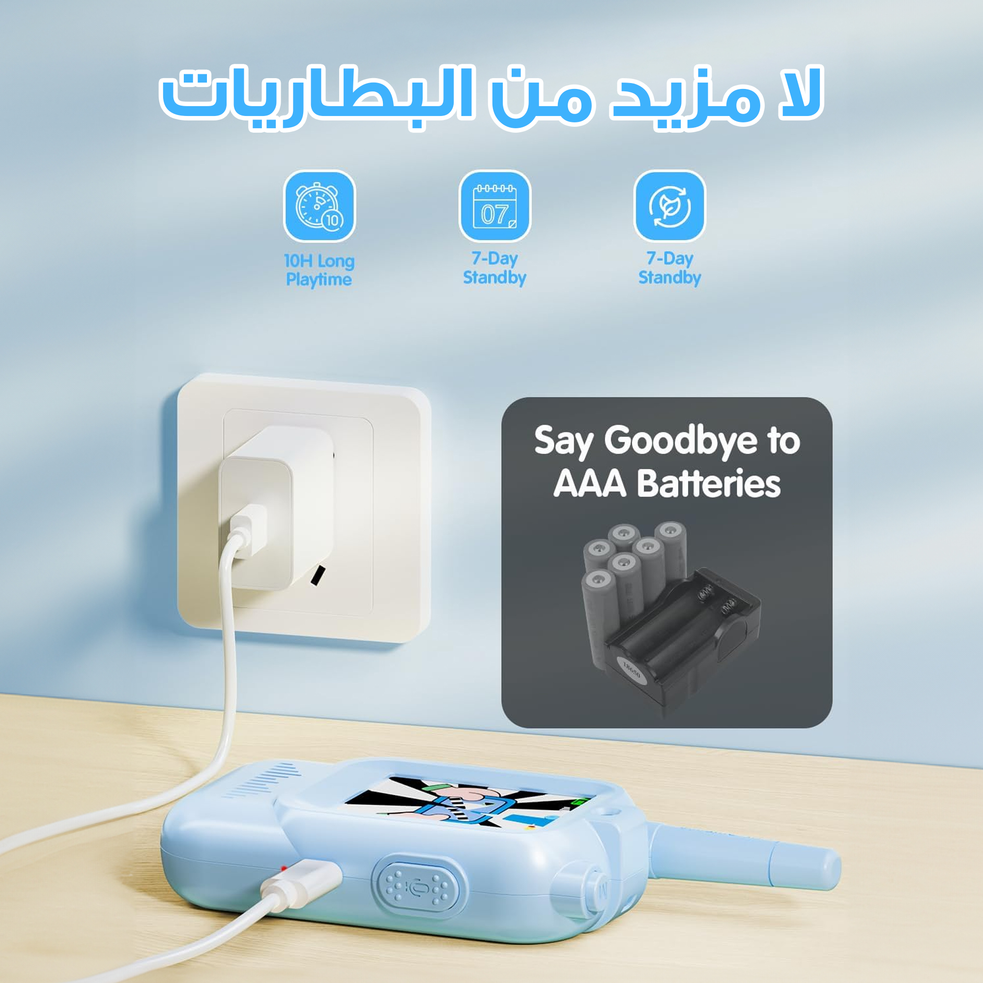بطارية قابلة للشحن تدوم لفترات اللعب
